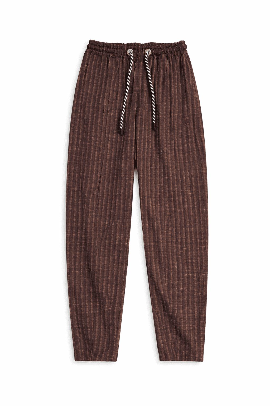 Baggy poplin pants featuring an all-over digital corduroy-inspired print, elastic waistband, and adjustable drawstrings.